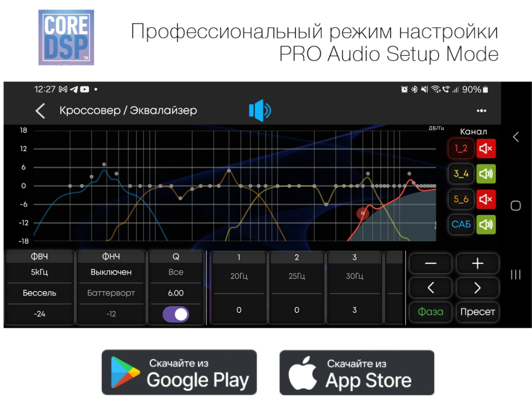1-6 каналы: HPF (ФВЧ) / LPF (ФНЧ): 20 Гц — 12,5 кГц / Отключен