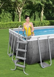 Каркасный бассейн Bestway 56996 - это модель прямоугольной формы с крупными габаритами и может устанавливаться на любом дачном дворе или придомовой территории.