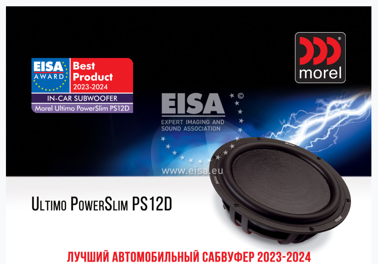 Модель сабвуферного динамика Morel Ultimo PowerSlim PS124D завоевала престижную награду EISA за лучший сабвуфер года. Эта награда является свидетельством упорного труда и приверженности делу компании Morel.